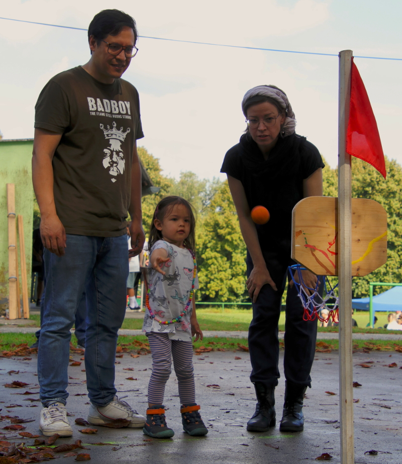 Leander Haase mit Schwester Wanja und Eltern beim Büchsenwerfen