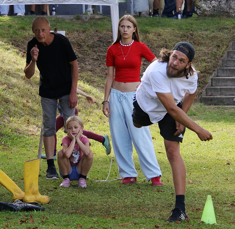 Knapp verfehlt Matthias Feldhacke den Rekord beim Stiefelweitwerfen und auch das AK-Treppchen